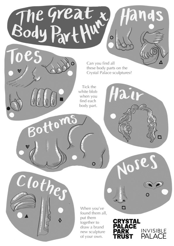 Have fun finding the missing body parts in Crystal Palace Park. Use the map and symbols to help you.